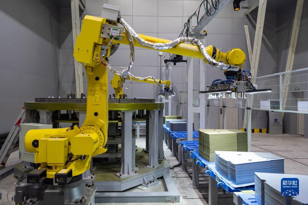 3月29日,在哈電集團哈爾濱電機廠(chǎng)有限責任公司的生產(chǎn)車(chē)間,智能疊片機器人在進(jìn)行自動(dòng)化作業(yè)。