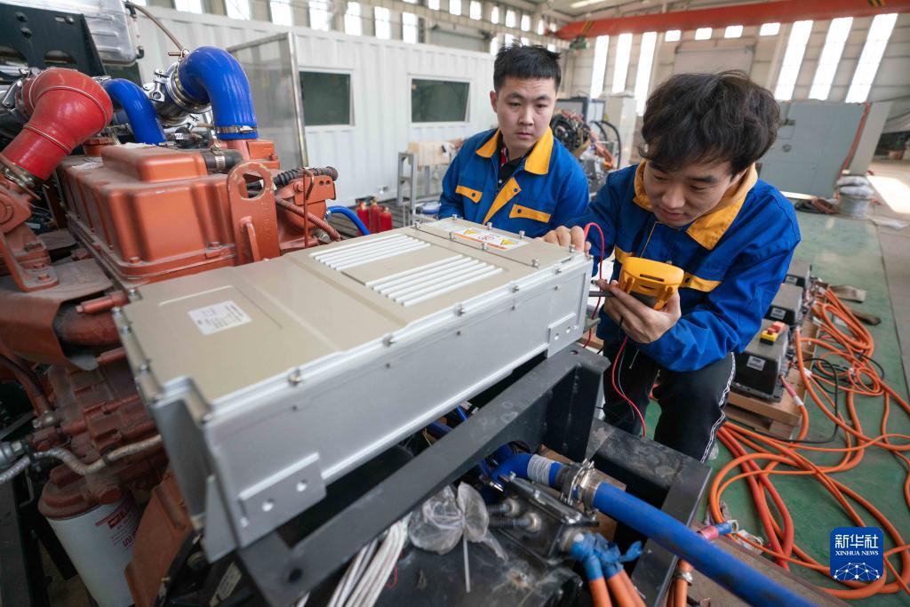 3月29日,在河北滄州渤海新區黃驊市北京交通大學(xué)黃驊軌道交通綜合研發(fā)實(shí)驗基地,來(lái)自北京交通大學(xué)的博士生團隊進(jìn)行混合動(dòng)力系統試驗。