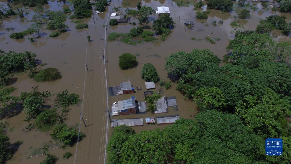這是3月29日拍攝的巴西阿克里州里奧布朗庫的受災景象(無(wú)人機照片)。