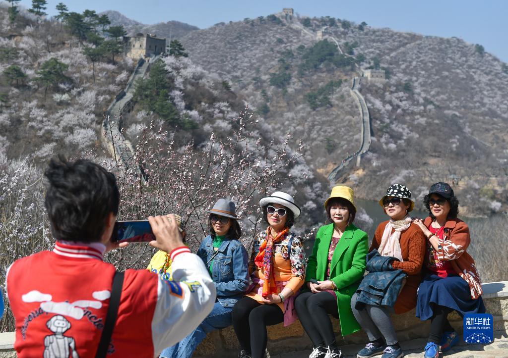3月29日,游客在黃花城水長(cháng)城景區拍照留影。