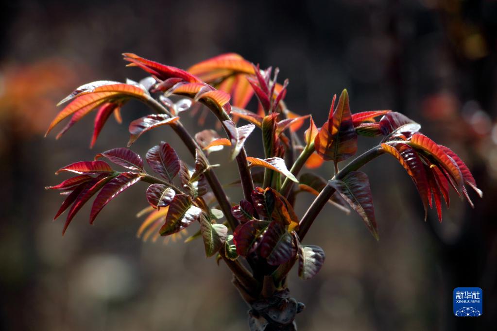 3月29日,紅綠相間的香椿芽長(cháng)勢喜人。