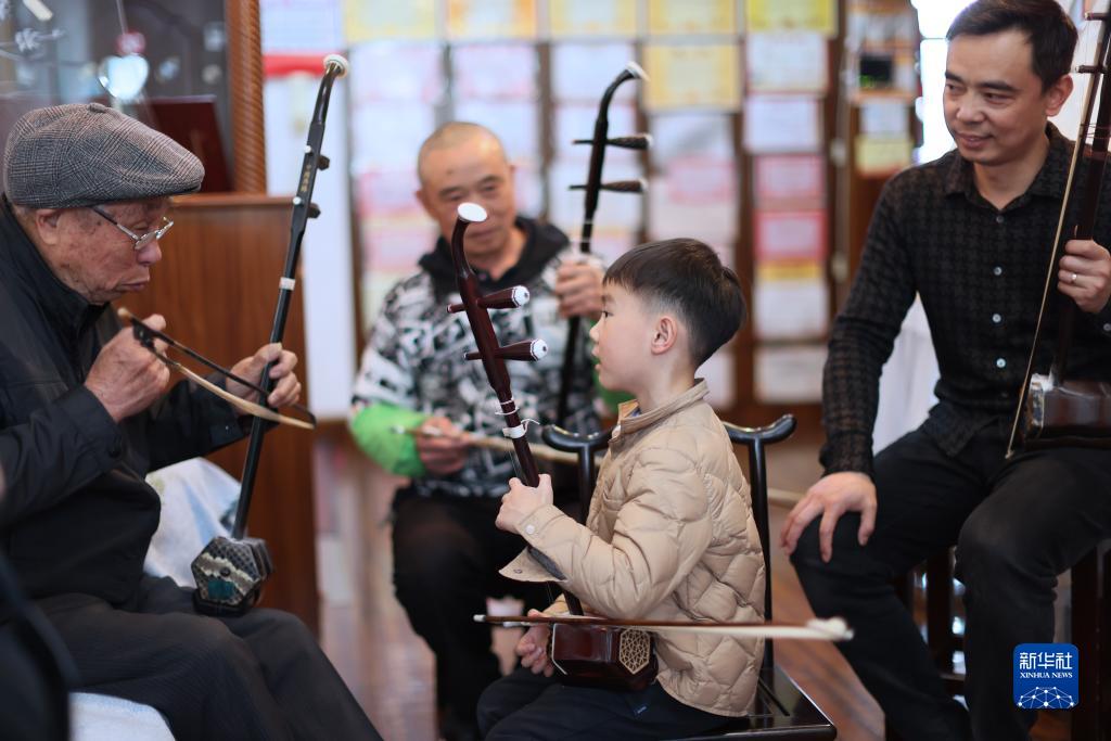 識譜、拉弦樣樣不懂,錢(qián)?;奶幱懡?,然后回家摸索練習,慢慢掌握二胡演奏技巧。受他的影響,兒子錢(qián)建平也愛(ài)上了二胡演奏。生活條件越來(lái)越好,孫子錢(qián)鈞在女兒錢(qián)智嫻5歲時(shí)便開(kāi)始請專(zhuān)業(yè)二胡老師授課,父女倆一起學(xué)習,共同提高。2019年,錢(qián)智嫻獲得第四屆“敦煌杯”中國二胡演奏比賽非職業(yè)少年B組金獎。如今,錢(qián)鈞7歲的兒子錢(qián)智臣以姐姐為榜樣,也開(kāi)始練習二胡。