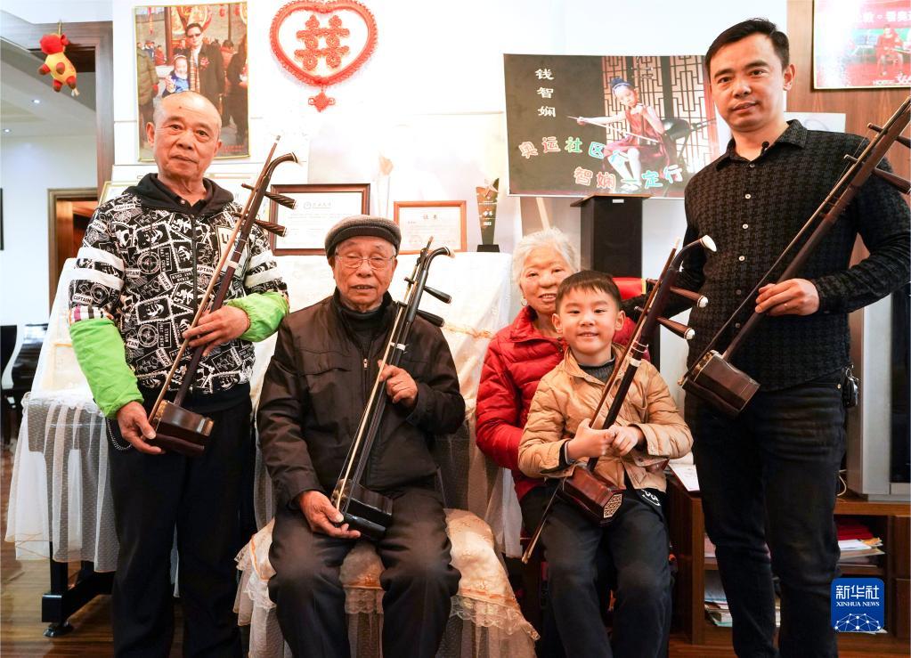 識譜、拉弦樣樣不懂,錢(qián)?;奶幱懡?,然后回家摸索練習,慢慢掌握二胡演奏技巧。受他的影響,兒子錢(qián)建平也愛(ài)上了二胡演奏。生活條件越來(lái)越好,孫子錢(qián)鈞在女兒錢(qián)智嫻5歲時(shí)便開(kāi)始請專(zhuān)業(yè)二胡老師授課,父女倆一起學(xué)習,共同提高。2019年,錢(qián)智嫻獲得第四屆“敦煌杯”中國二胡演奏比賽非職業(yè)少年B組金獎。如今,錢(qián)鈞7歲的兒子錢(qián)智臣以姐姐為榜樣,也開(kāi)始練習二胡。
