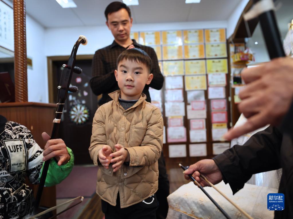 識譜、拉弦樣樣不懂,錢(qián)?;奶幱懡?,然后回家摸索練習,慢慢掌握二胡演奏技巧。受他的影響,兒子錢(qián)建平也愛(ài)上了二胡演奏。生活條件越來(lái)越好,孫子錢(qián)鈞在女兒錢(qián)智嫻5歲時(shí)便開(kāi)始請專(zhuān)業(yè)二胡老師授課,父女倆一起學(xué)習,共同提高。2019年,錢(qián)智嫻獲得第四屆“敦煌杯”中國二胡演奏比賽非職業(yè)少年B組金獎。如今,錢(qián)鈞7歲的兒子錢(qián)智臣以姐姐為榜樣,也開(kāi)始練習二胡。