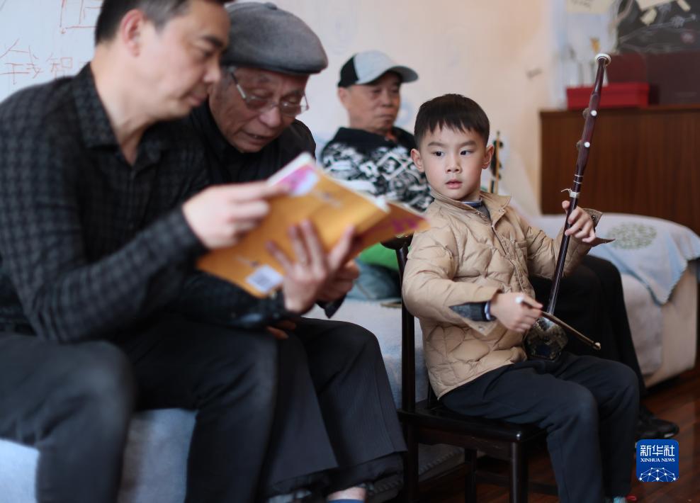 識譜、拉弦樣樣不懂,錢(qián)?;奶幱懡?,然后回家摸索練習,慢慢掌握二胡演奏技巧。受他的影響,兒子錢(qián)建平也愛(ài)上了二胡演奏。生活條件越來(lái)越好,孫子錢(qián)鈞在女兒錢(qián)智嫻5歲時(shí)便開(kāi)始請專(zhuān)業(yè)二胡老師授課,父女倆一起學(xué)習,共同提高。2019年,錢(qián)智嫻獲得第四屆“敦煌杯”中國二胡演奏比賽非職業(yè)少年B組金獎。如今,錢(qián)鈞7歲的兒子錢(qián)智臣以姐姐為榜樣,也開(kāi)始練習二胡。