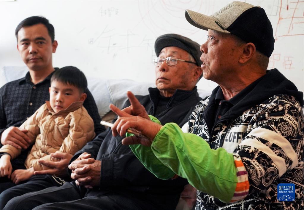 3月29日,錢(qián)建平(右一)在向記者介紹父親與二胡結緣的經(jīng)歷。