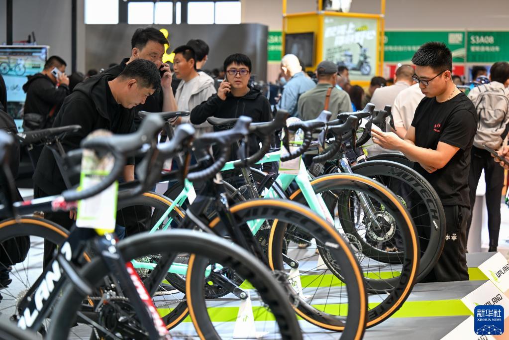3月30日,觀(guān)眾在自行車(chē)展區參觀(guān)展出的自行車(chē)。