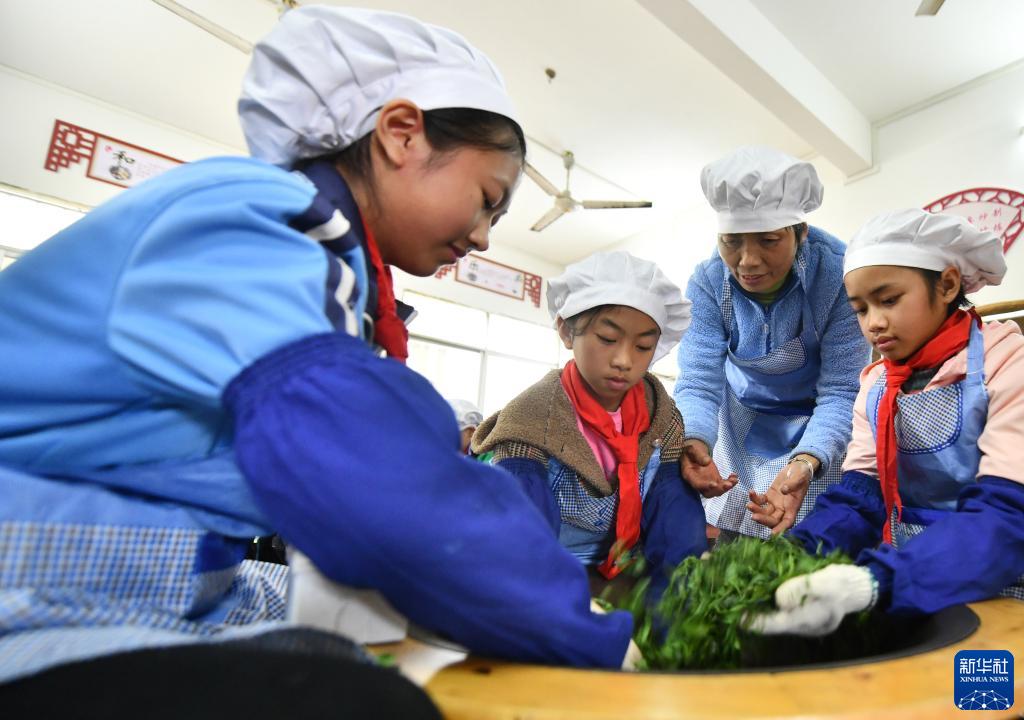 3月29日,在廣西梧州市蒼梧縣六堡鎮中心校,小學(xué)生們在學(xué)習制茶。