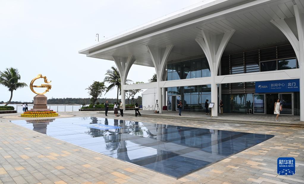 3月30日拍攝的博鰲亞洲論壇新聞中心門(mén)前的光伏地磚。
