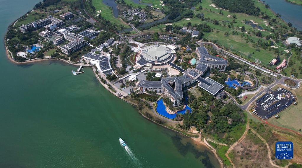 在博鰲零碳示范區,大部分建筑頂上都鋪設了光伏板(3月15日攝,無(wú)人機照片)。