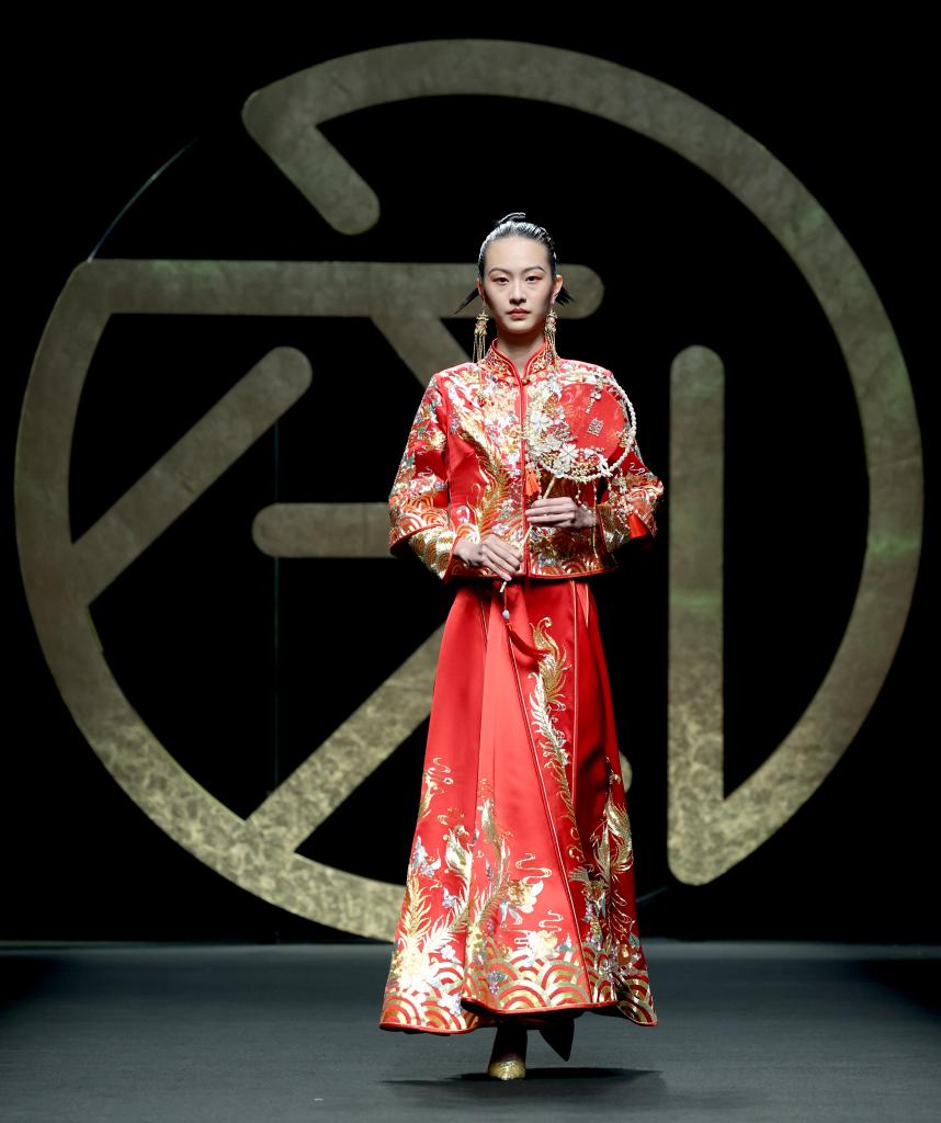 3月30日,在北京舉行的中國國際時(shí)裝周2023秋冬系列“六禮·張效奇”時(shí)裝發(fā)布上,模特展示時(shí)裝設計師張效奇設計的時(shí)裝。