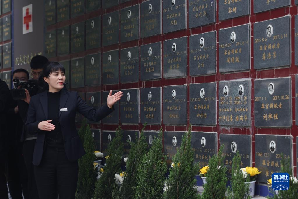 3月30日,工作人員在湖南省長(cháng)沙市鳳凰山遺愛(ài)人間公益紀念陵園講解器官捐獻者葉沙的故事。