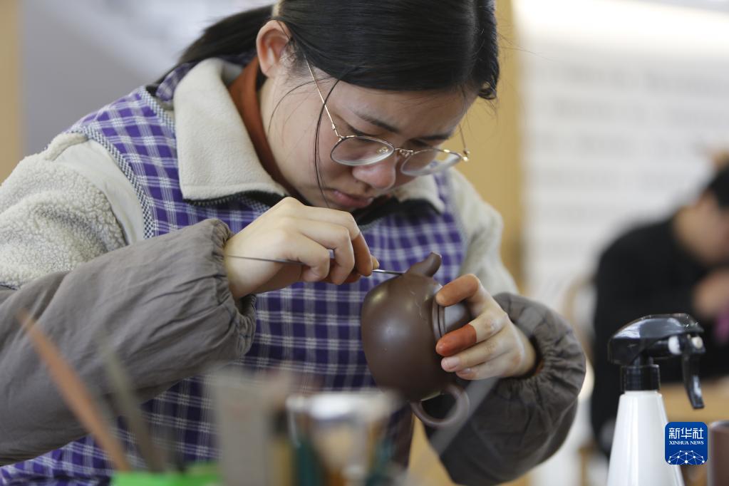3月30日,社員在江蘇宜興西望紫砂陶瓷專(zhuān)業(yè)合作社練習制作紫砂壺。