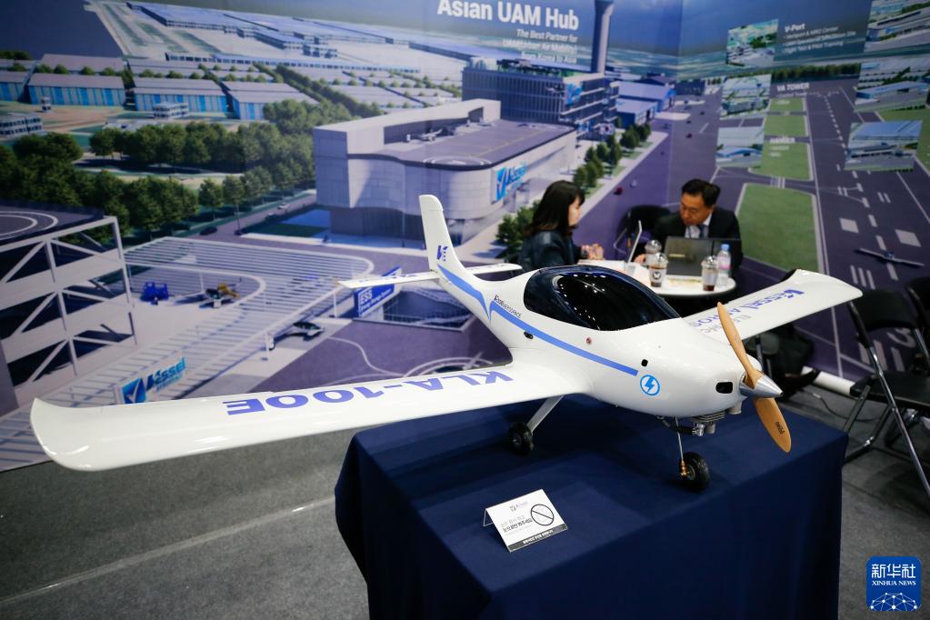 這是3月31日在韓國京畿道高陽(yáng)市韓國國際展覽中心的“2023首爾移動(dòng)出行展”上拍攝的城市空中交通工具模型。