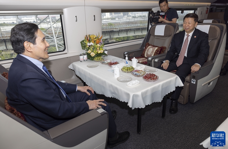 3月31日下午,中共中央臺辦、國務(wù)院臺辦主任宋濤(右)與馬英九先生(左)同乘高鐵從武漢赴長(cháng)沙。新華社記者 才揚 攝