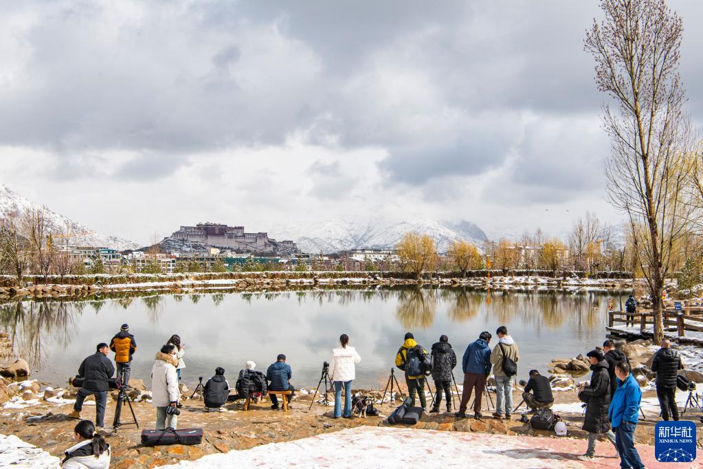 攝影愛(ài)好者在拉薩南山公園拍攝雪景(3月30日攝)。