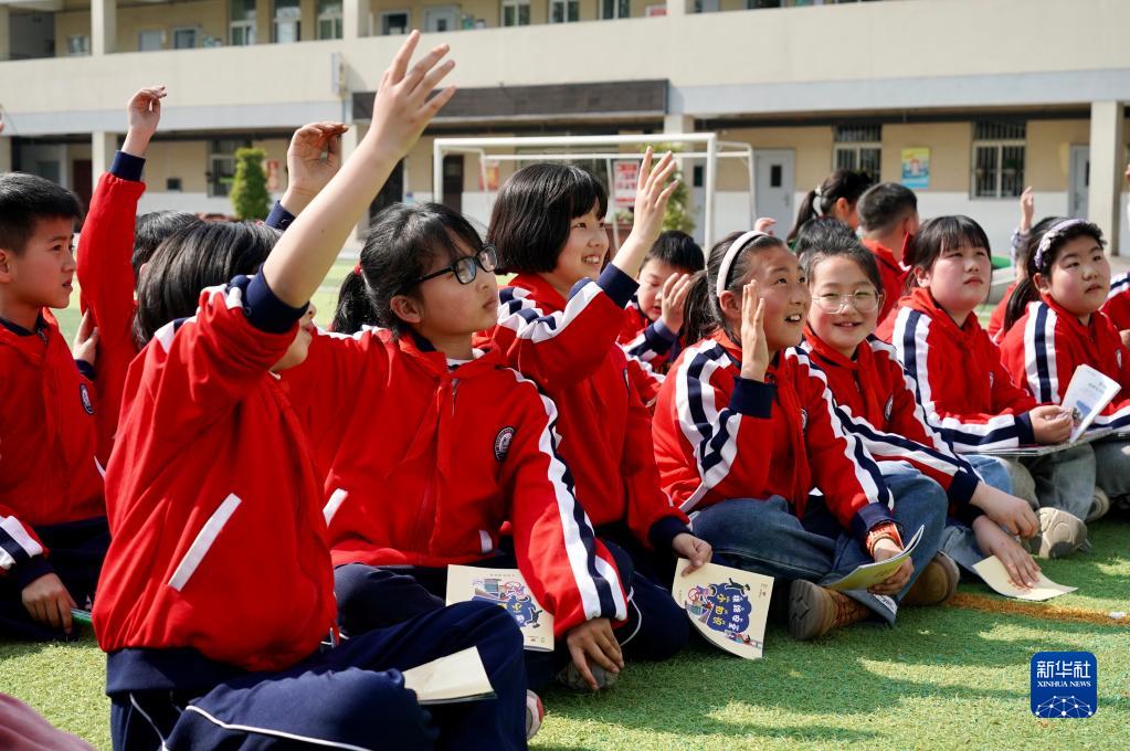 3月31日,徐州市漢橋小學(xué)的學(xué)生在鐵路安全知識講解中舉手回答互動(dòng)問(wèn)題。