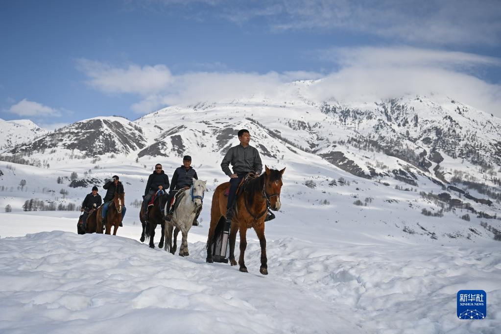 3月30日,蘇卡(前)和馬隊隊員一起,巡視上山的線(xiàn)路。