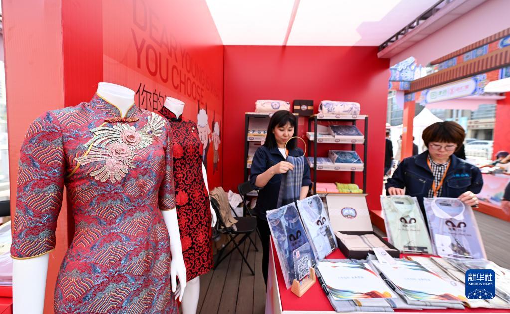 3月31日,津城老字號品牌展商在天津海河古文化街親水平臺上擺放展品。