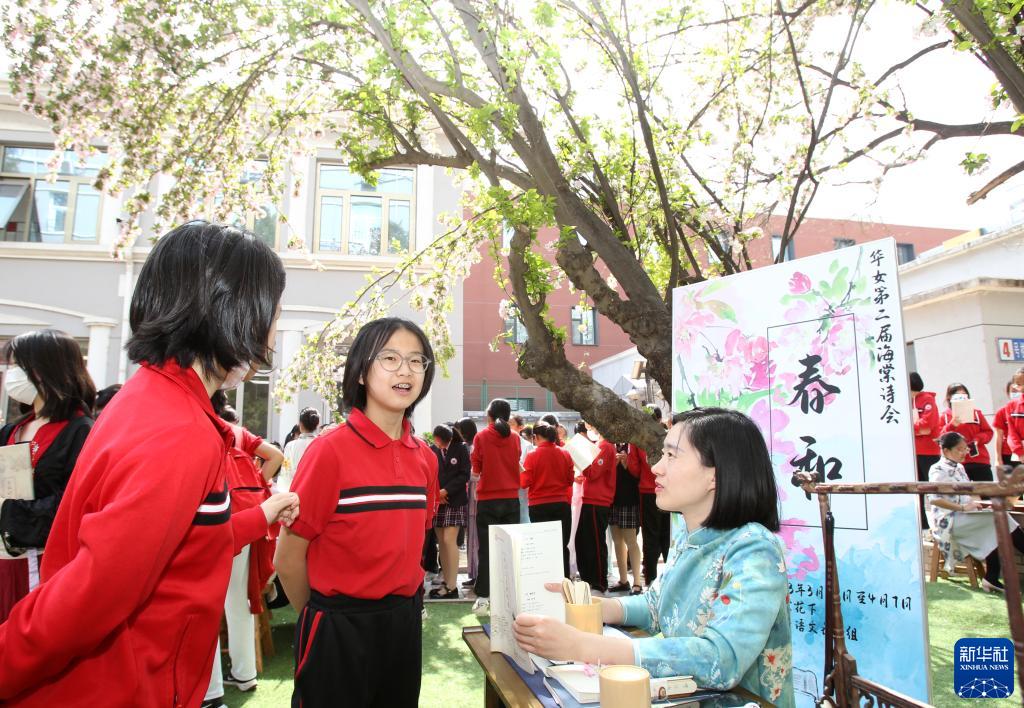 當日,北師大實(shí)驗華夏女子中學(xué)舉辦以“春和”為主題的第二屆“海棠詩(shī)會(huì )”。師生們選取有關(guān)“春天”“和煦”“生機”“美好”的詩(shī)歌,在校園的海棠樹(shù)下賞析吟誦,共享詩(shī)歌之美,傳承中華優(yōu)秀傳統文化。