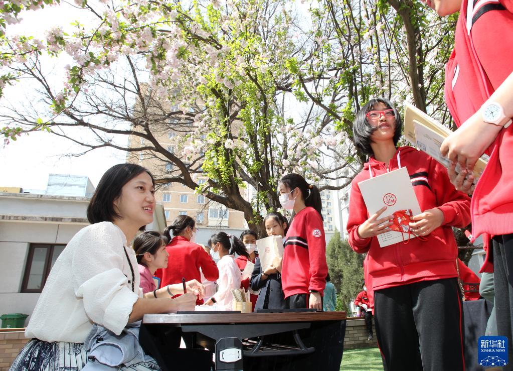 當日,北師大實(shí)驗華夏女子中學(xué)舉辦以“春和”為主題的第二屆“海棠詩(shī)會(huì )”。師生們選取有關(guān)“春天”“和煦”“生機”“美好”的詩(shī)歌,在校園的海棠樹(shù)下賞析吟誦,共享詩(shī)歌之美,傳承中華優(yōu)秀傳統文化。