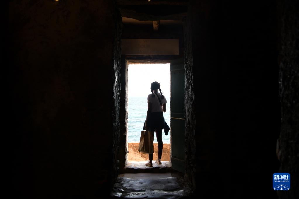 3月23日,游客在塞內加爾戈雷島奴隸博物館內參觀(guān)“自由之門(mén)”?!白杂芍T(mén)”指奴隸被買(mǎi)主挑選后,由此門(mén)走出并登上奴隸船,從狹小的奴隸屋“被解放”,被運到未知目的地供人奴役。