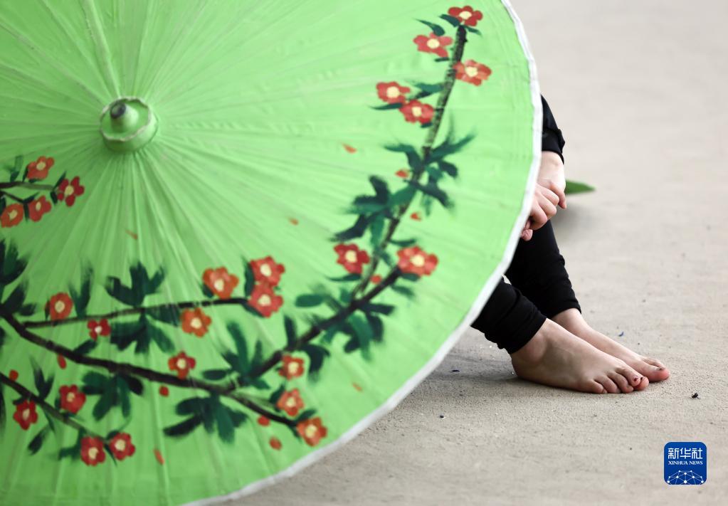 3月31日,演員在位于江蘇省鹽城市建湖縣的江蘇省雜技團訓練間歇休息。