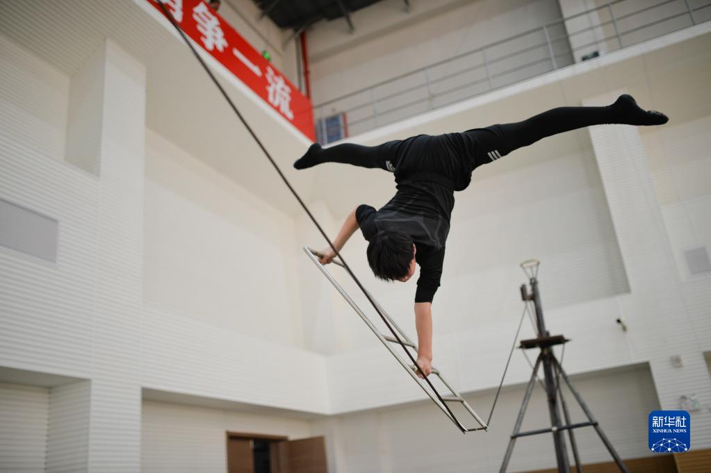 3月31日,演員在位于江蘇省鹽城市建湖縣的江蘇省雜技團訓練。