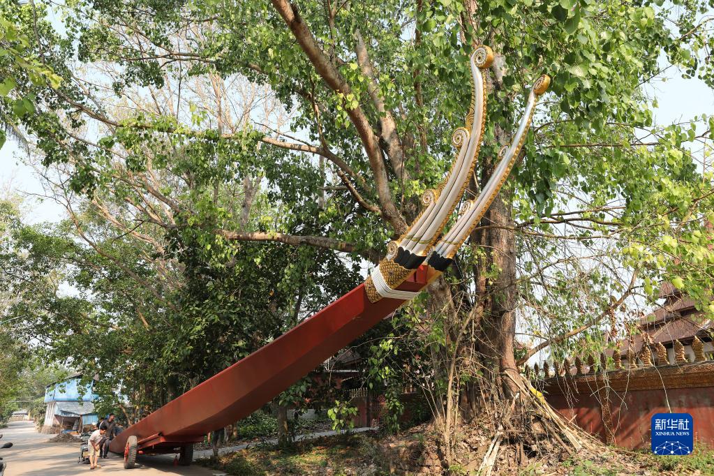 連日來(lái),云南省西雙版納傣族自治州景洪市各村寨的傣族群眾忙著(zhù)為龍舟扎龍頭、送龍舟下水,為即將到來(lái)的潑水節龍舟賽做準備。龍舟賽是當地傣族群眾在傣歷新年期間舉辦的集競技、觀(guān)賞于一體的慶?;顒?dòng)。