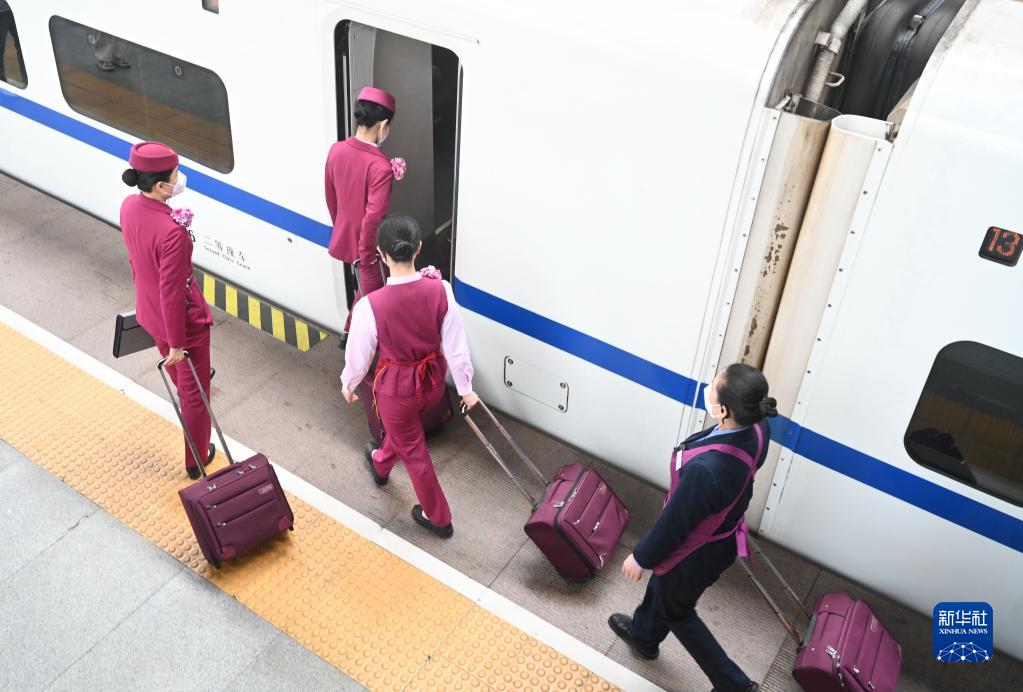 4月1日,中國鐵路南昌局集團有限公司福州客運段工作人員登上從福州火車(chē)站開(kāi)往香港西九龍的G3001次列車(chē)。
