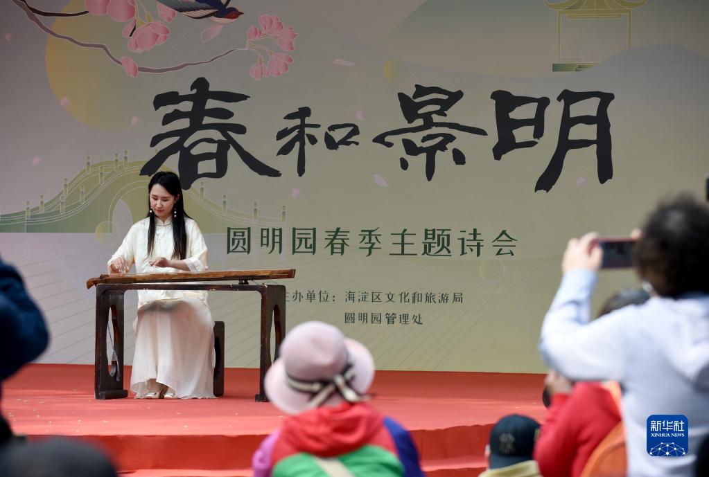 當日,“春和景明”圓明園春季主題系列活動(dòng)拉開(kāi)帷幕,圓明園第二十八屆踏青節也同時(shí)開(kāi)幕,市民游客在欣賞園內美景時(shí),還可以欣賞到春季主題詩(shī)會(huì )、樂(lè )器演奏快閃等一系列豐富多彩的文化活動(dòng)。