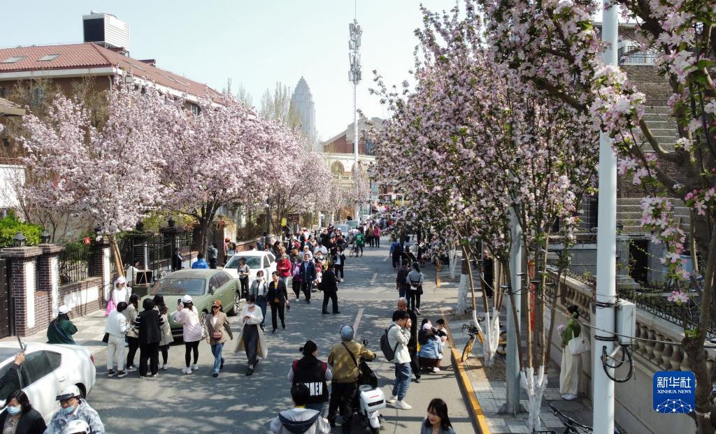 連日來(lái),天津市五大道風(fēng)景區內海棠花盛開(kāi),景色綿延上千米,成為春日里的“網(wǎng)紅打卡地”。為進(jìn)一步激活文旅消費市場(chǎng),天津市和平區于3月31日至4月9日舉辦“津遇和平·海棠花”系列活動(dòng),以花為媒促進(jìn)文旅商融合,在景區內舉行了花車(chē)巡游、海棠文創(chuàng )市集、主題燈光秀等豐富多彩的活動(dòng),讓市民游客“游”出新“花”樣,“春日經(jīng)濟”綻放出新活力。