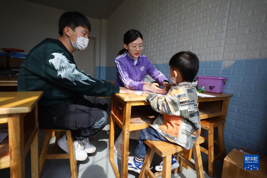 3月30日,特教老師陳進(jìn)(中)為兒童進(jìn)行精細動(dòng)作評估。