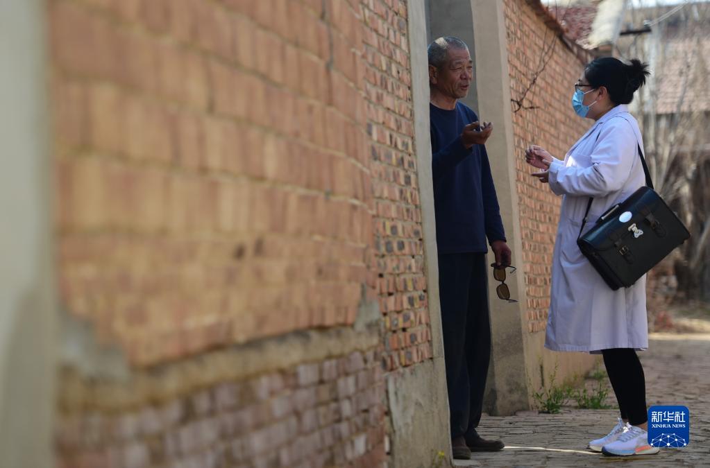 4月1日,鹽山縣孟店鎮東小盧村大學(xué)生村醫張花蕊回訪(fǎng)老年患者。
