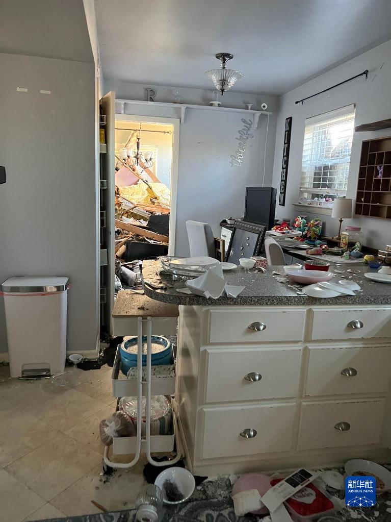 這是4月1日在美國阿肯色州小石城拍攝的一棟居民房屋遭受龍卷風(fēng)襲擊后的景象。