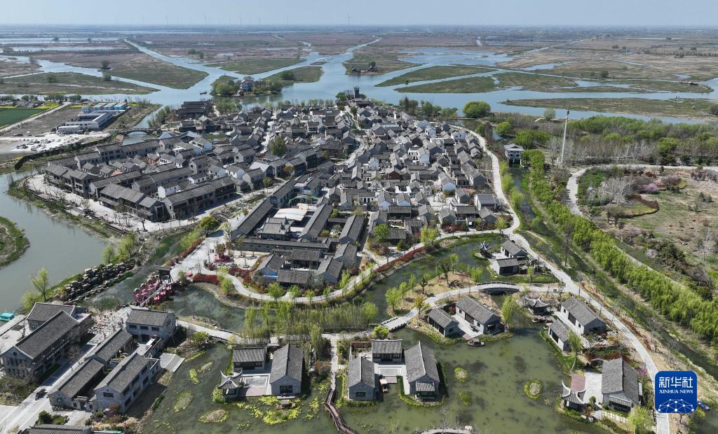 4月1日拍攝的建湖縣淮劇小鎮(無(wú)人機照片)。