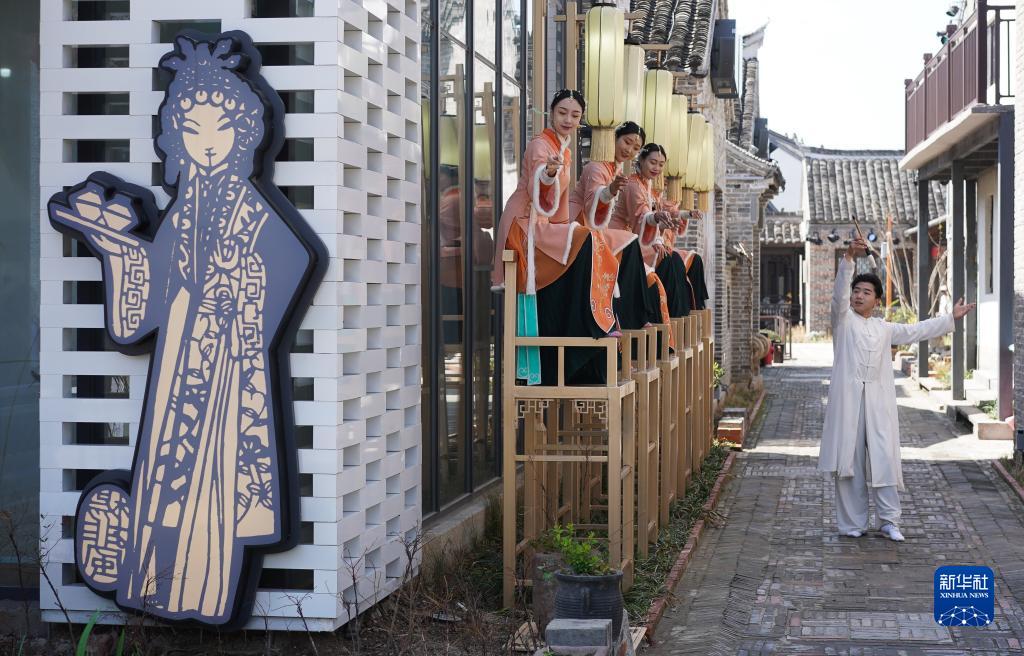 4月1日,演員在位于江蘇省鹽城市建湖縣的淮劇小鎮表演淮劇。