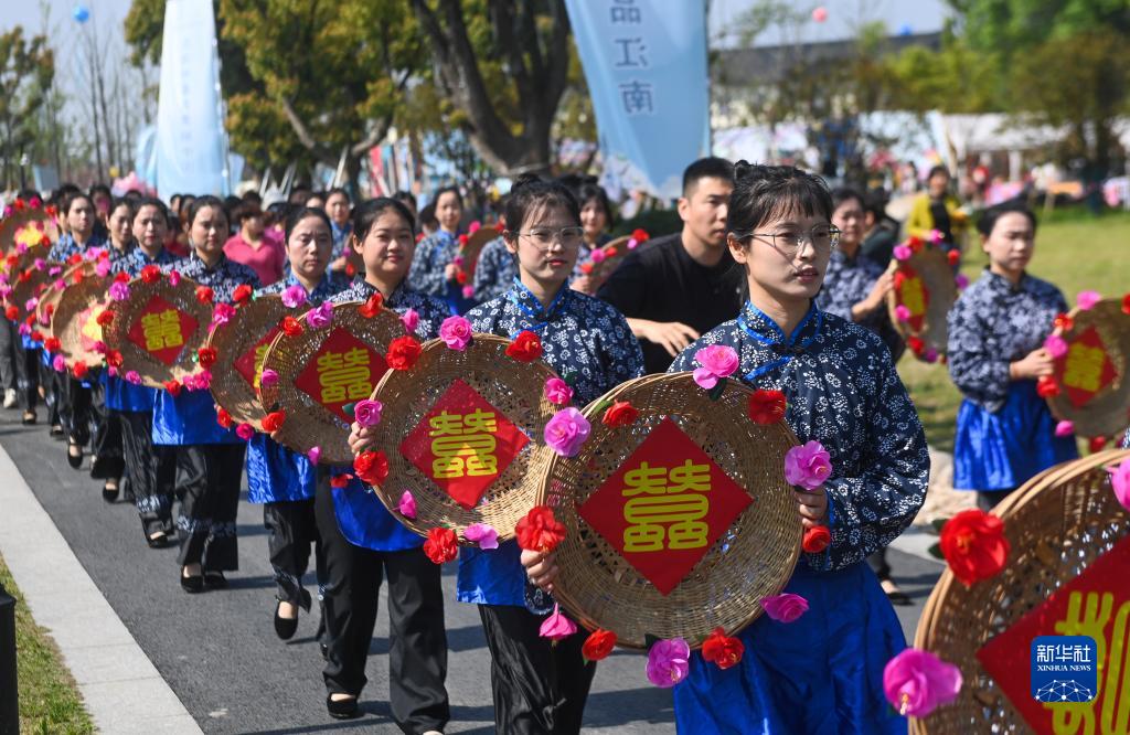 4月2日,人們參加蠶花節民俗巡游活動(dòng)。