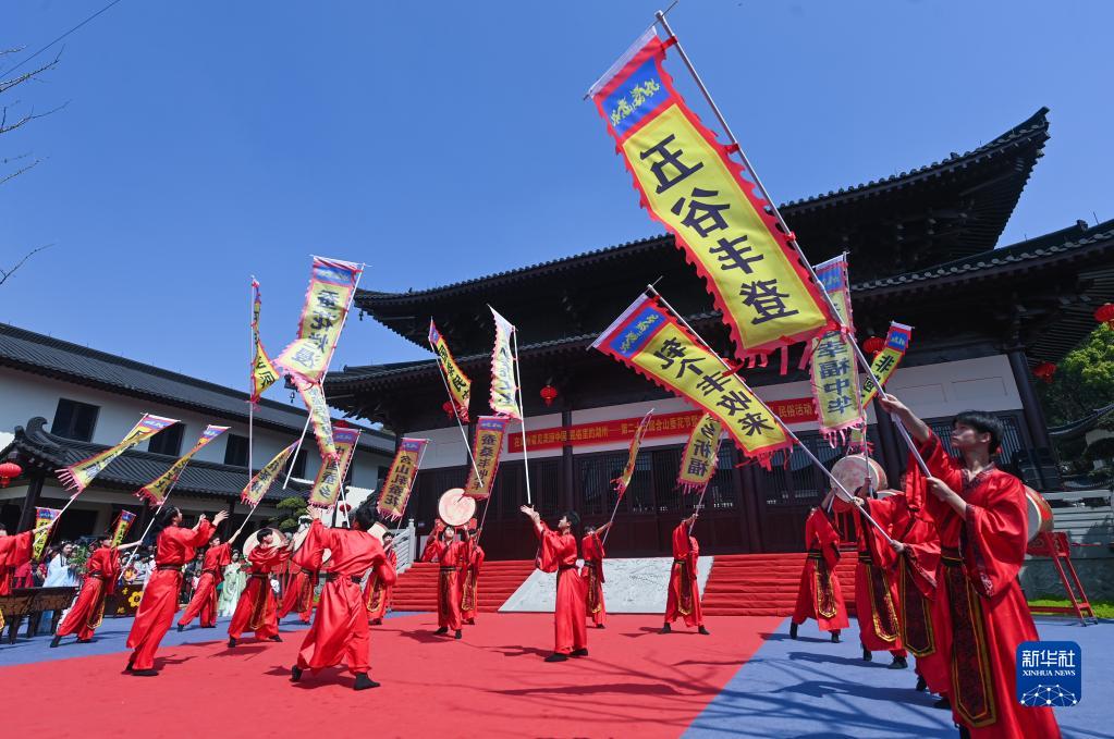 4月2日,含山山南大殿前的廣場(chǎng)上正在舉行蠶花節的“祭蠶神”民俗表演。