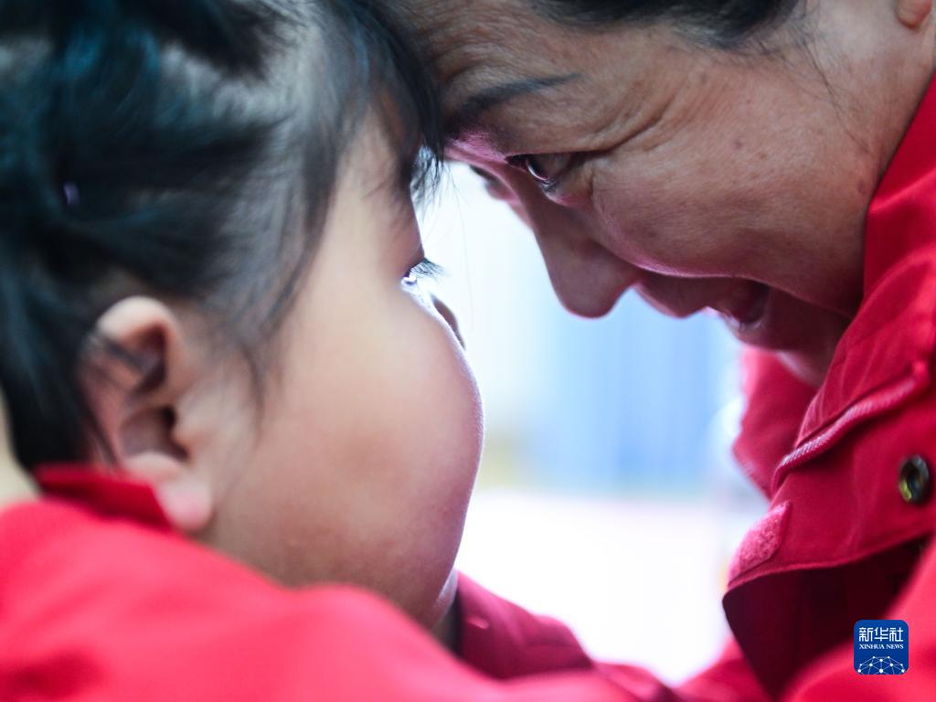 3月30日,在青海省西寧市星光特殊兒童服務(wù)中心,陳志芳(右)給孤獨癥兒童做表達訓練。