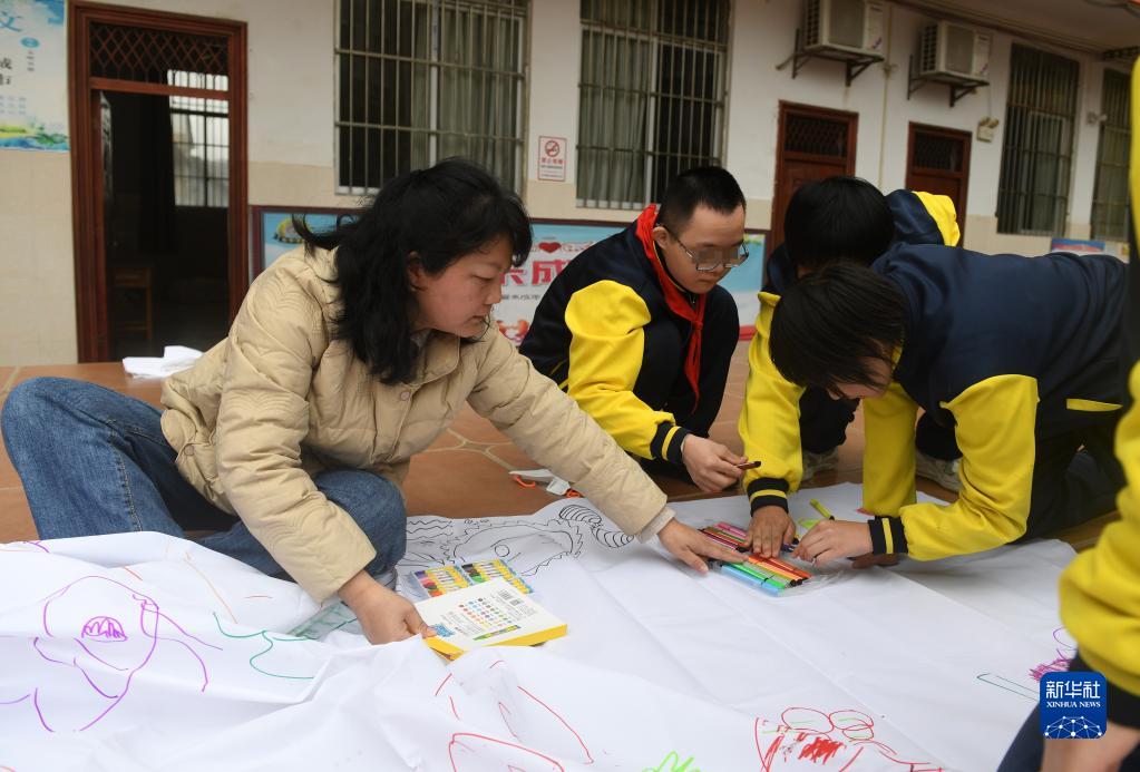 在廣西南寧高新區龍華學(xué)校,何冬艷教孤獨癥學(xué)生畫(huà)畫(huà)(3月31日攝)。