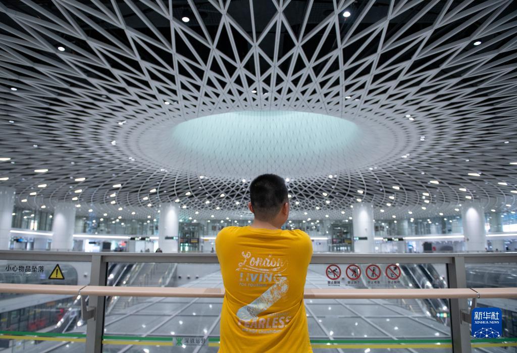 3月30日,黃志能在深圳崗廈北地鐵站的站臺等待爸爸接單。因為換乘方便,這個(gè)站是黃志能最喜歡的地鐵站。