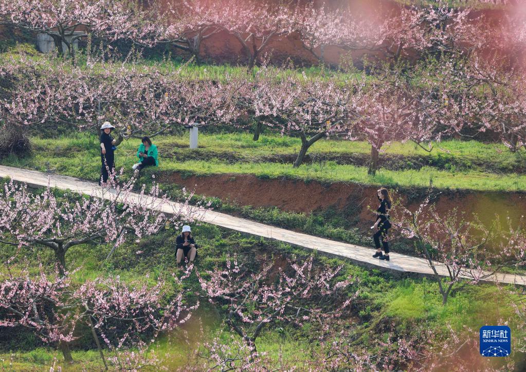 4月2日,游人在貴州省銅仁市玉屏侗族自治縣皂角坪街道甕陽(yáng)村桃園基地游覽。