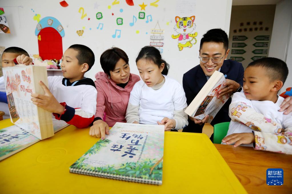 4月2日,在關(guān)注“星星的孩子”公益捐助活動(dòng)上,工作人員為孩子們贈送畫(huà)筆和畫(huà)本。