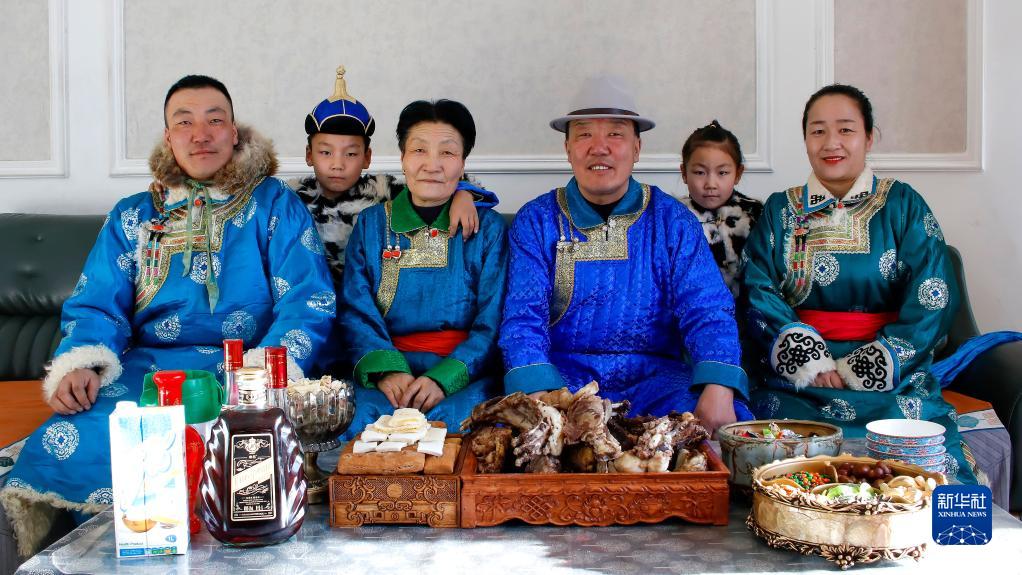 這是朝克德力根一家人的合影(資料照片)。從左到右依次為朝克德力根,兒子哈納嘎?tīng)?,母親敖日勒瑪,父親圖門(mén)巴雅爾,女兒哈麗嘎恩,妻子孟根圖雅。