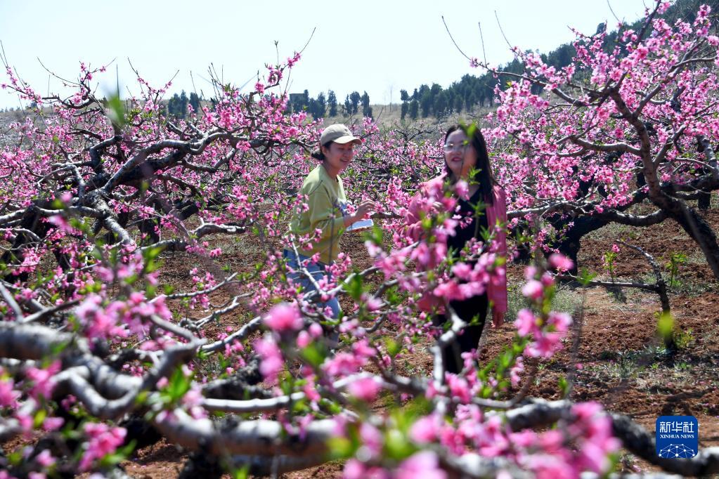4月2日,游客在張山子鎮萬(wàn)畝桃花峪觀(guān)賞桃花。