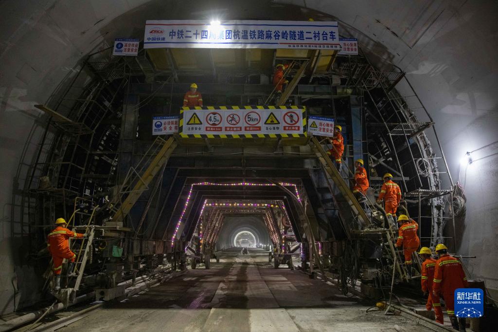4月3日,中鐵二十四局的工人登上杭溫鐵路麻谷嶺隧道二襯臺車(chē)進(jìn)行施工作業(yè)。當日凌晨,麻谷嶺隧道全線(xiàn)貫通。