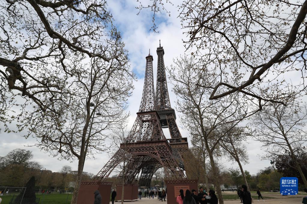 這是4月3日在法國巴黎拍攝的埃菲爾鐵塔(后)和“小埃菲爾鐵塔”。
