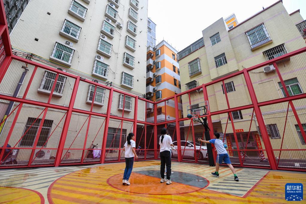 4月2日,在深圳市龍華區元芬村,居民在增設的籃球場(chǎng)打籃球。