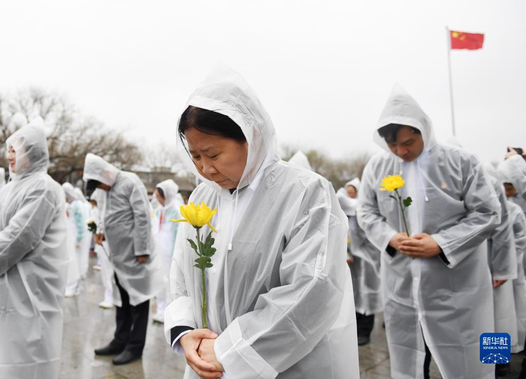 4月4日,社會(huì )各界代表在啟動(dòng)儀式上向在抗戰中英勇?tīng)奚牧沂磕А?/p>